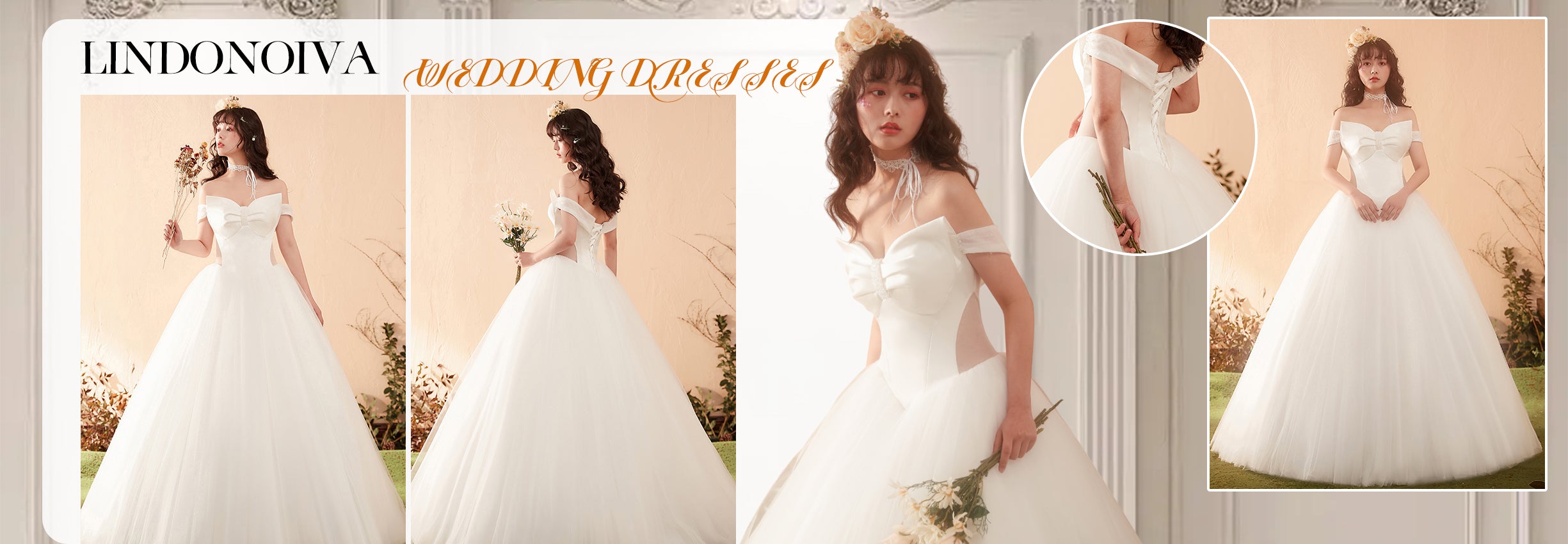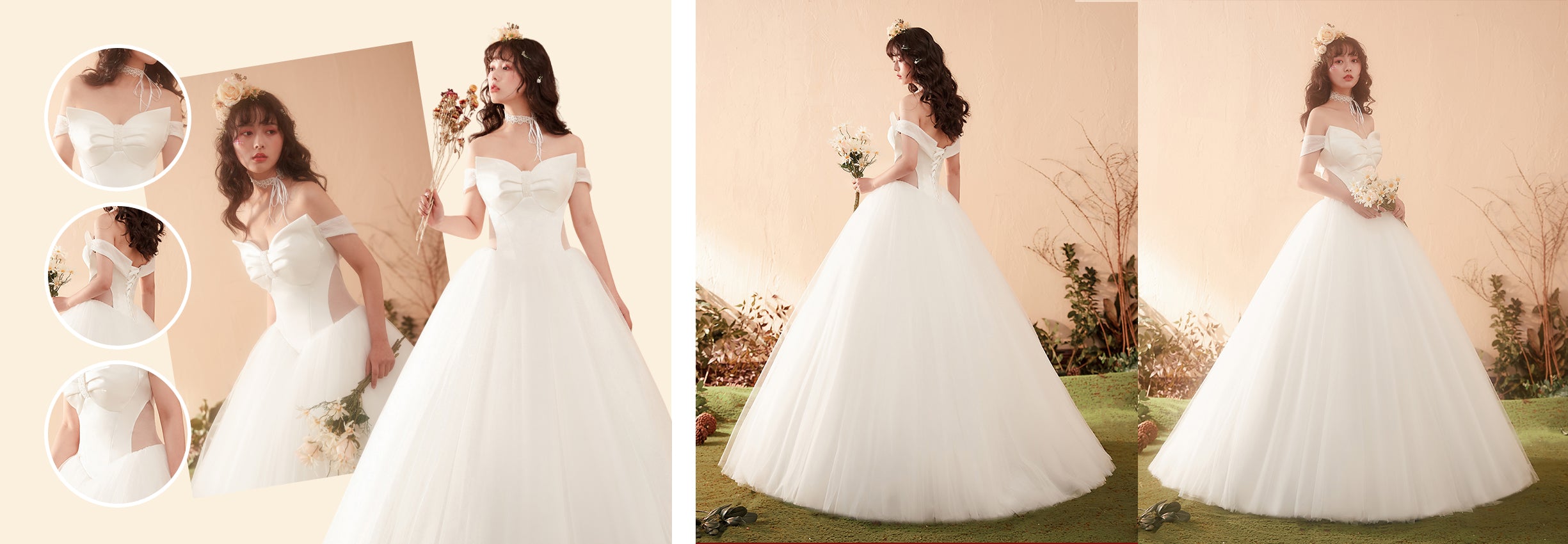 Elegant Off-Shoulder Ball Gown Wedding Dress with Statement Bow