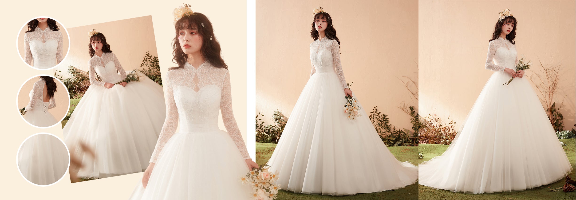 Timeless Graceful High-Neck Lace Bridal Gown with Long Sleeves